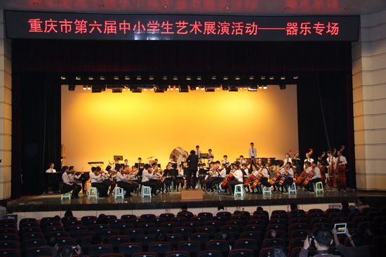 在刚刚结束的重庆市第六届艺术展演各项比赛中,我校艺术团发扬团结奋战的精神,捷报频传,喜获丰收。我校交响乐团以一首大气磅礴的《伏尔塔瓦河》获器乐类决赛一等奖第二名,并受到评委的一致好评,舞蹈团以一支唯美的古典舞《咏荷》战胜众多高水平舞蹈队,也摘得舞蹈类决赛一等奖第三名,同时我校民乐团与少年宫合作的交响民乐《乔家大院》,弦乐四重奏《如歌的行板》也一举夺得一等奖。其中管弦乐团及舞蹈团两支团队的录像已报送国家教育部参评。此前于今年6月结束的声乐专场我校在参加决赛的25支合唱队中独树一帜,也取得了决赛一等奖第二名的佳绩。在此对潜心训练、为校争光的全体艺术团师生表示热烈的祝贺和衷心的感谢,愿他们再接再厉,再创佳绩。