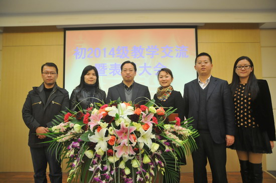 (巴蜀网 崔琴)11月22日,初2014级在校本部行政楼三楼会议室召开了半期教学交流暨表彰大会。巴蜀中学党委书记张勇、鲁能巴蜀中学校长助理夏义勇、党总支书记付英、教务处副主任张升、学生处副主任李嘉婧、年级主任曲思源、许靖及初2014级全体教师参加了这次大会。大会由许靖主持。