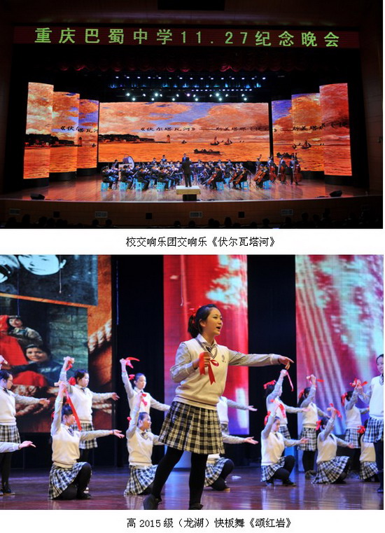 据悉,本次晚会是重庆巴蜀中学“革命传统教育月”的重要活动之一。十一月以来,校学生处、校团委、校学生会在学校党委、行政的领导下,通过开展内容丰富、积极、健康的各类校园文化活动,提升学校的人文精神,深入贯彻“善为骨、雅为根、志为魂”的德育理念,极大地丰富了同学们的校园生活与精神追求。