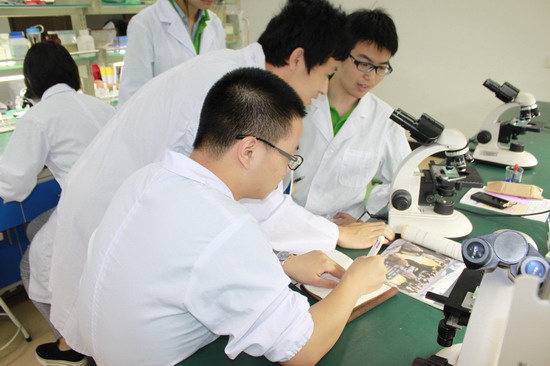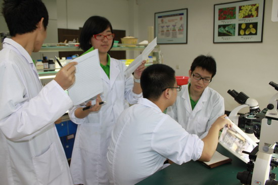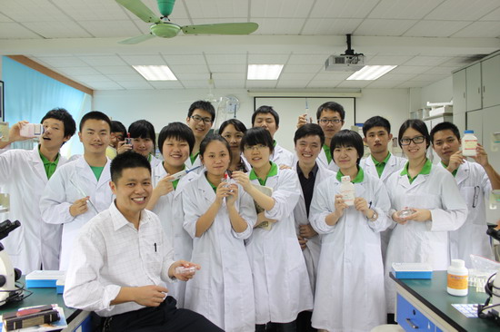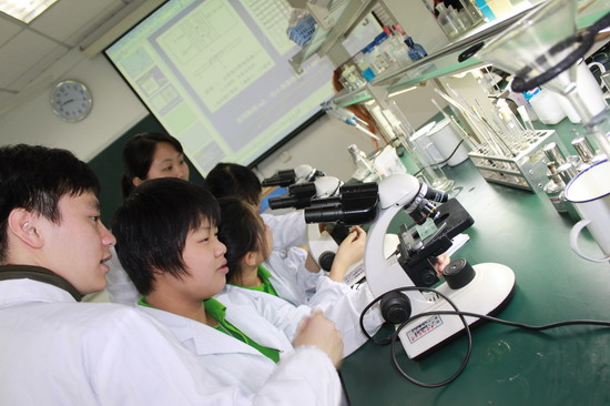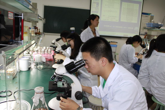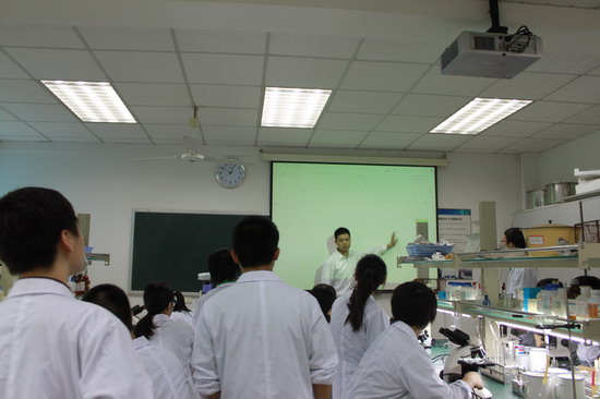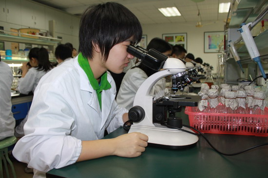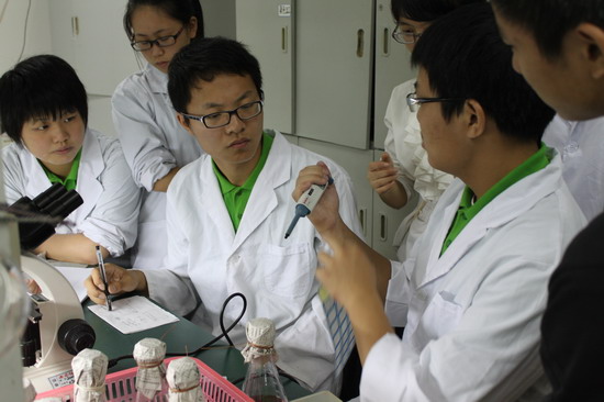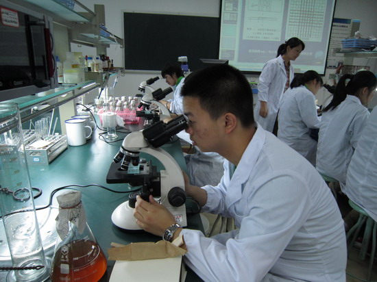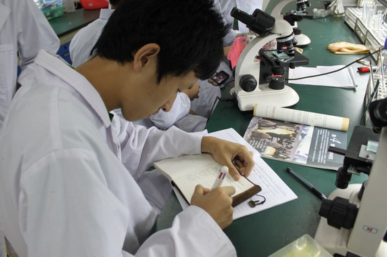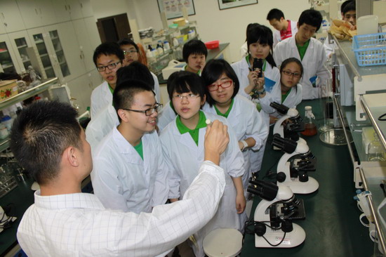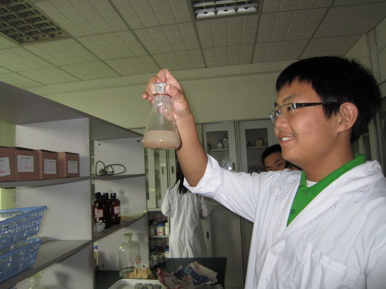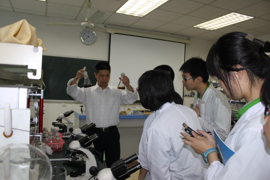 最近,这些同学结合教材上的相关实验指导,对进一步“探究酵母菌种群数量的动态变化”的实验产生了浓厚的兴趣。他们很想知道酵母菌究竟是什么样的生物,为什么它能够酿出美味的酒来,哪些因素会影响它的生长和繁殖。但由于条件的限制,目前我校生物实验室还无法完成。为了满足学生的求知欲,培养学生科学实验操作技能,周兴成、季鑫、何鑫三位老师立即联系了西南大学生科院院长邓洪平和微生物学徐耀波老师。他们很高兴能为中学生开放实验室并进行实验指导。