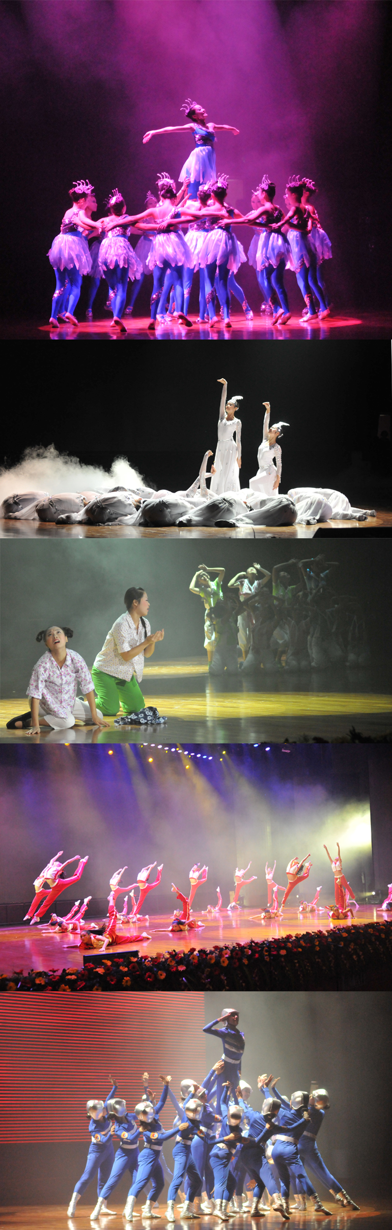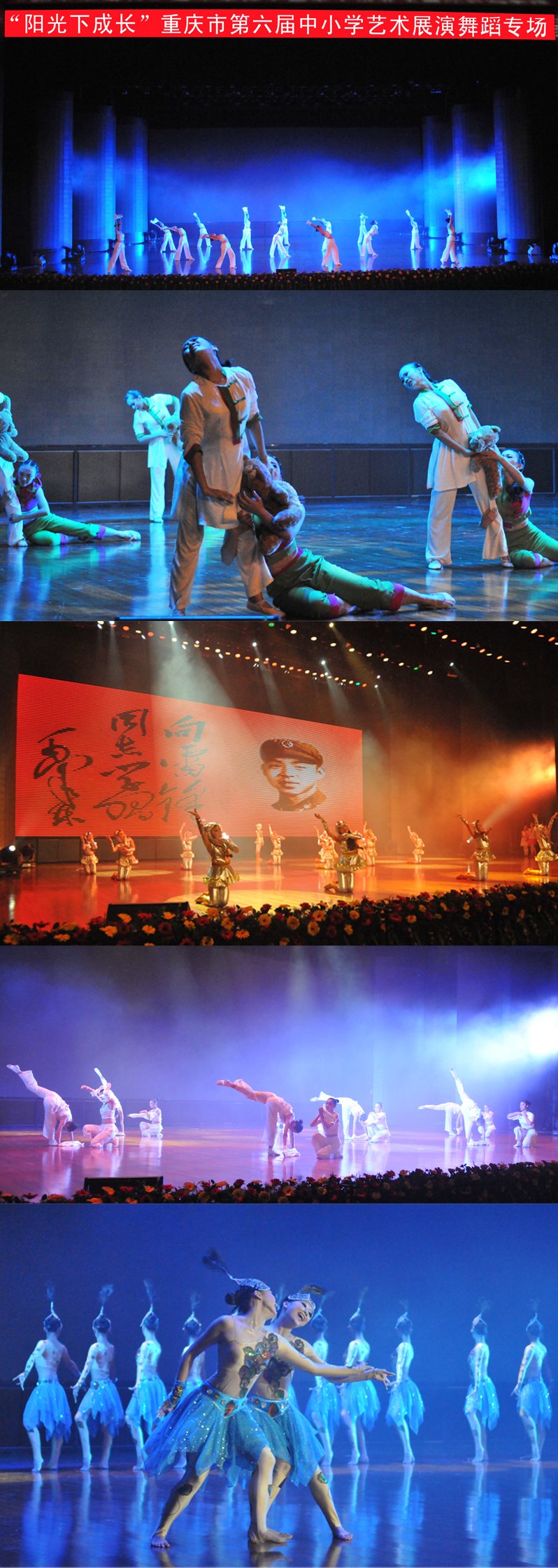 2012年10月14日下午14点30分艺术展演舞蹈专场的比赛在我校鲁能巴蜀大礼堂徐徐拉开了帷幕。来自各区、县、直属中学的二十六只参赛队伍用翩翩舞姿为全市的中小学师生们献上了一场视觉的艺术盛宴。
