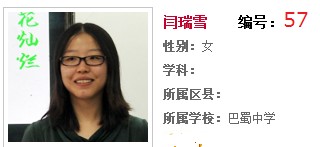 我校初中组有6名老师进入决赛,他们是闫瑞雪、许靖、蒋嘉盛、包琳、邹德容、冯玲。高中组有5名老师进入决赛,他们是:胡贤正、柳德宽、曾艳燕、宋杰。希望广大师生和家长、校友为他们投上宝贵一票。