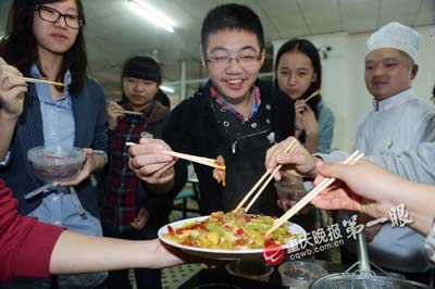 品尝亲手制作的佳肴 记者 史宗伟 摄