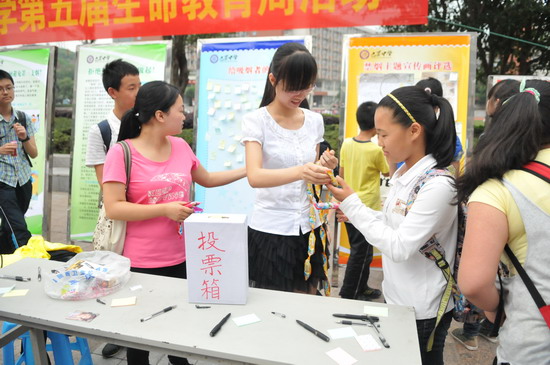 在2012年5月31日“世界无烟日”这个特别的日子,我校生物教研室在校景观大道举办了以“快乐青春,无烟校园”为主题的第五届鲁能巴蜀中学生命教育周活动,并取得圆满成功。
