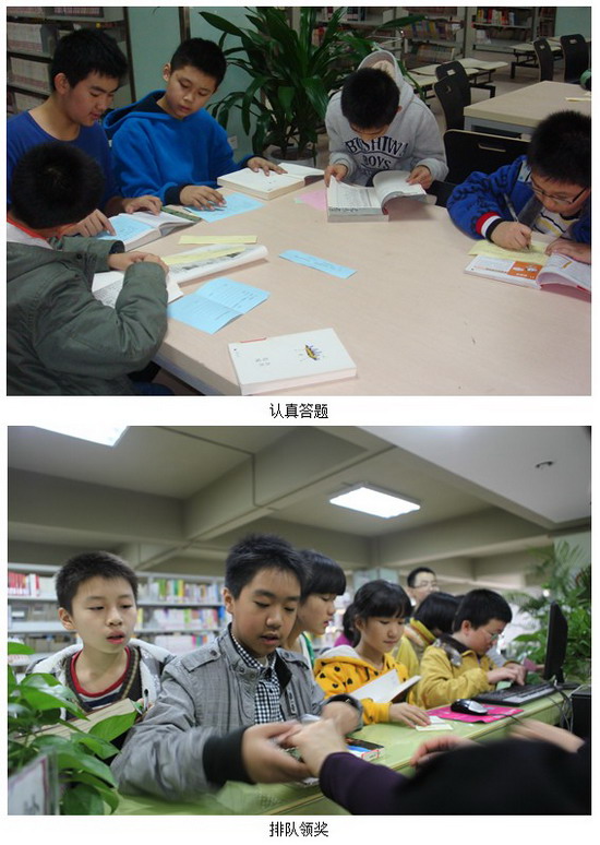 通过教室的视频培训和图书馆内视频复习,同学们在图书馆老师的引导下,领题、电脑查询、书库寻找、答题、领奖,秩序井然,激情澎湃。
