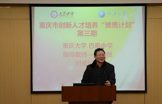 2014年1月3日,重庆巴蜀中学第三期基地班学员和重大导师对接仪式在巴蜀中学学术报告厅举行,来自重庆大学化工、材料、建筑、人文、光电、生物、城环、自动化、机械、计算机学院的12名博士、教授作为雏鹰计划高校导师参加对接仪式。我校“雏鹰基地班”60名学员分为12个课题研究小组聆听导师介绍实验室研究方向,激发了对科学研究的极大兴趣并积极和导师进行交流讨论。